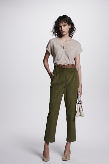 Composição: 60% Poliéster, 37% Algodão e 3% Elastano