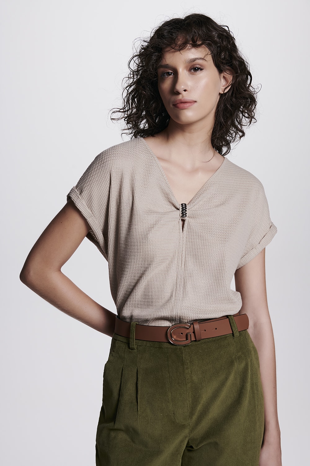 Uma peça versátil e superconfortável, a blusa de malha texturizada vem com detalhe bordado no decote.