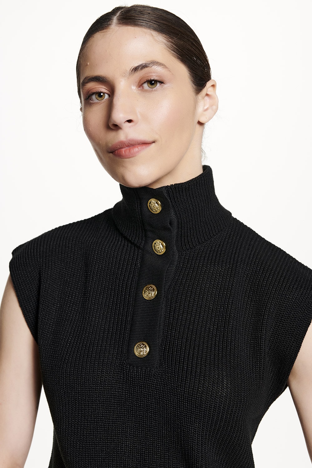 Blusa em tricot, toque macio e lindos botões frontais que a torna mais especial. Pode usar só ou com blusa de malha por baixo.