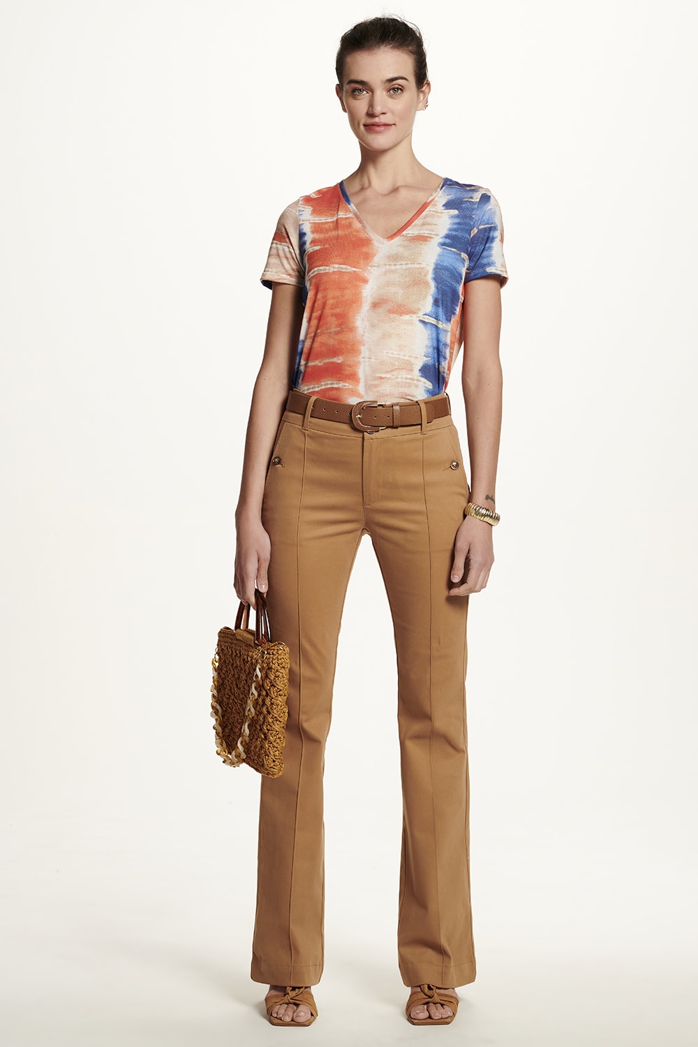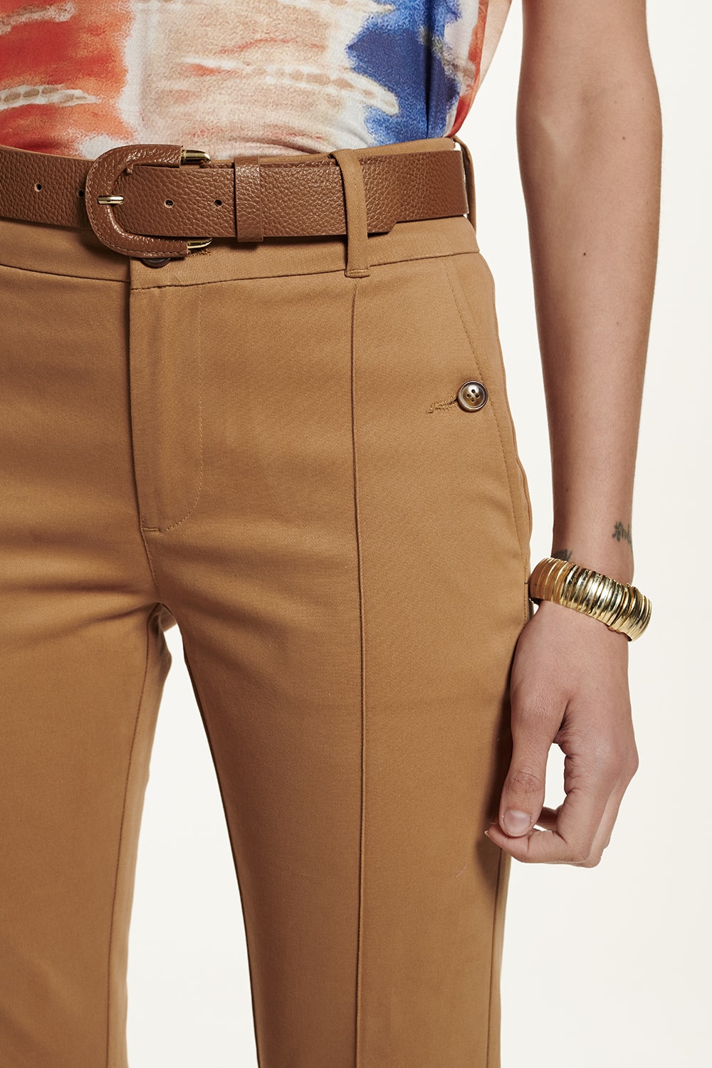 Calça em sarja modelagem boot cut, cintura alta, bolsos faca, botões de massa. Confortável e elegante para qualquer ocasião.