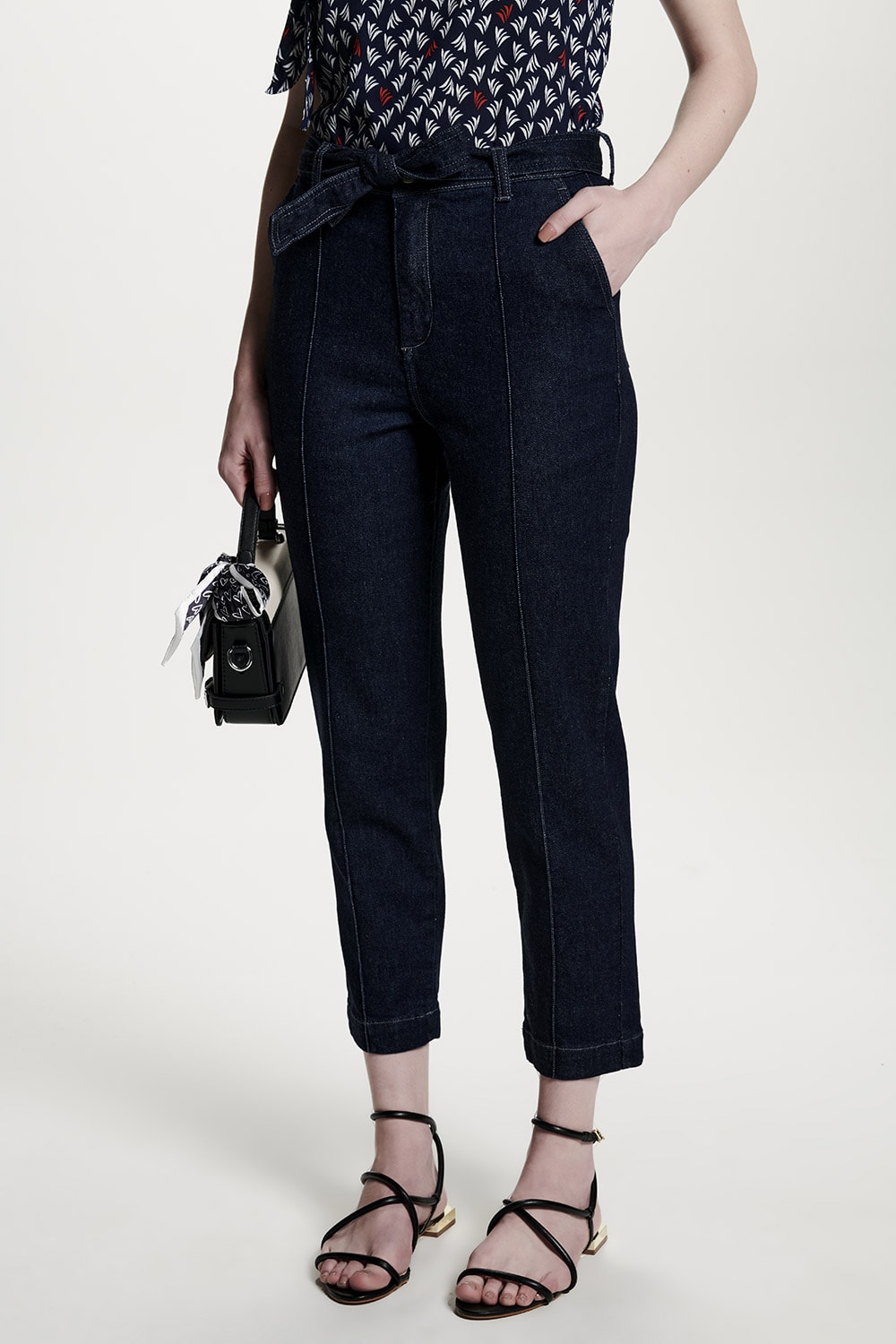 A calça jeans com faixa para amarrar e modelagem cigarrete é uma peça que traz o toque de estilo e personalidade. Perfeita para diversas ocasiões fica ainda mais versátil por estar nessa lavagem amaciada.