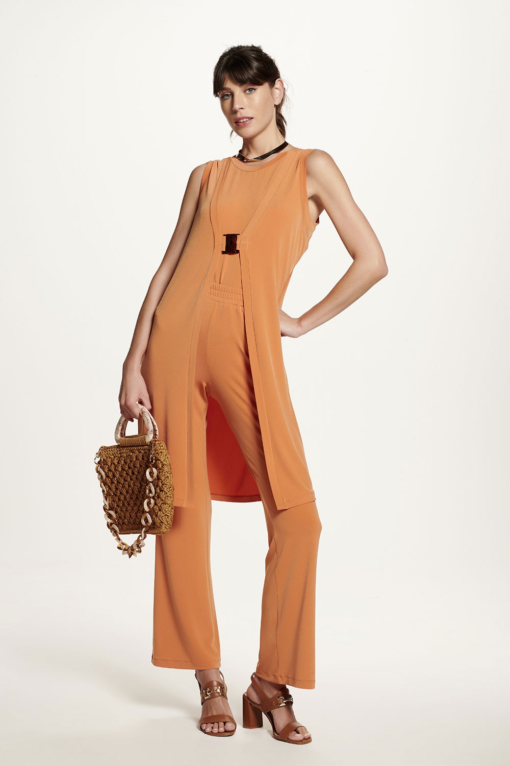 Calça em malha, modelagem reta, cintura alta com elástico na cintura. Ideal combinação com a referência 04.03.0916.