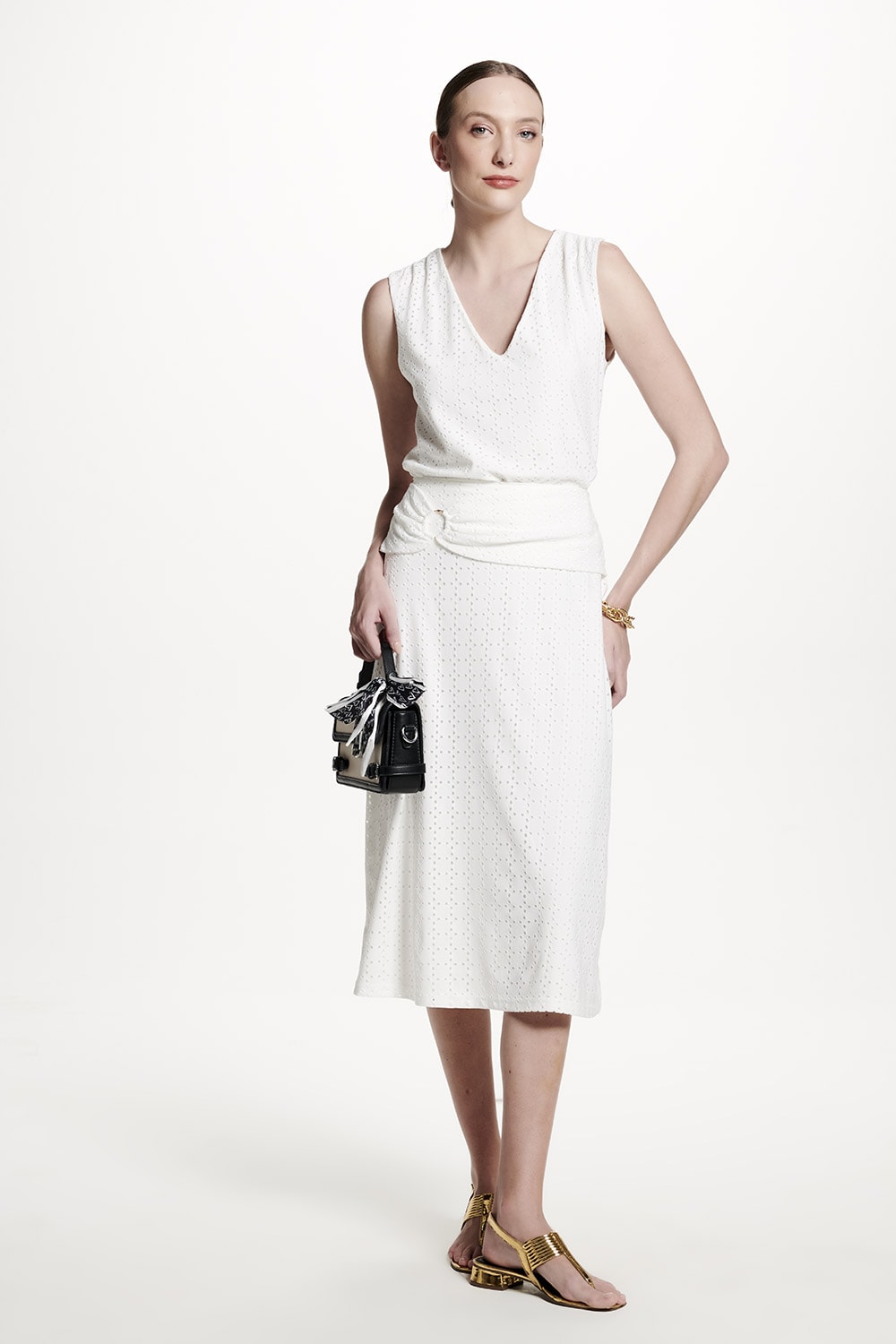 A saia de malha laise é a escolha perfeita para quem busca por conforto sem abrir mão da sofisticação. Combine com a regata Ref: 50.05.0064