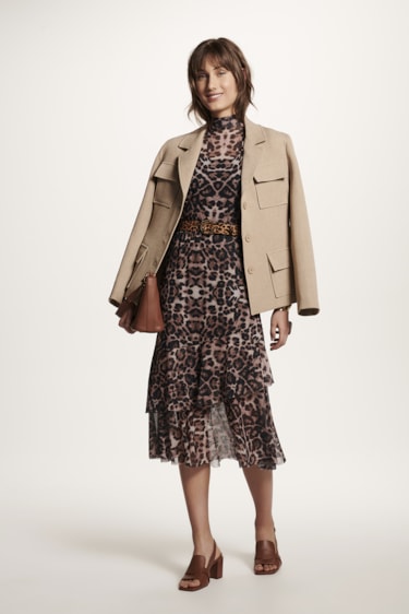 Nada como peças versáteis para compor looks criativos. Aposte na saia de tule com estampa animal print e combine com a blusa Ref.: 50.01.0708.