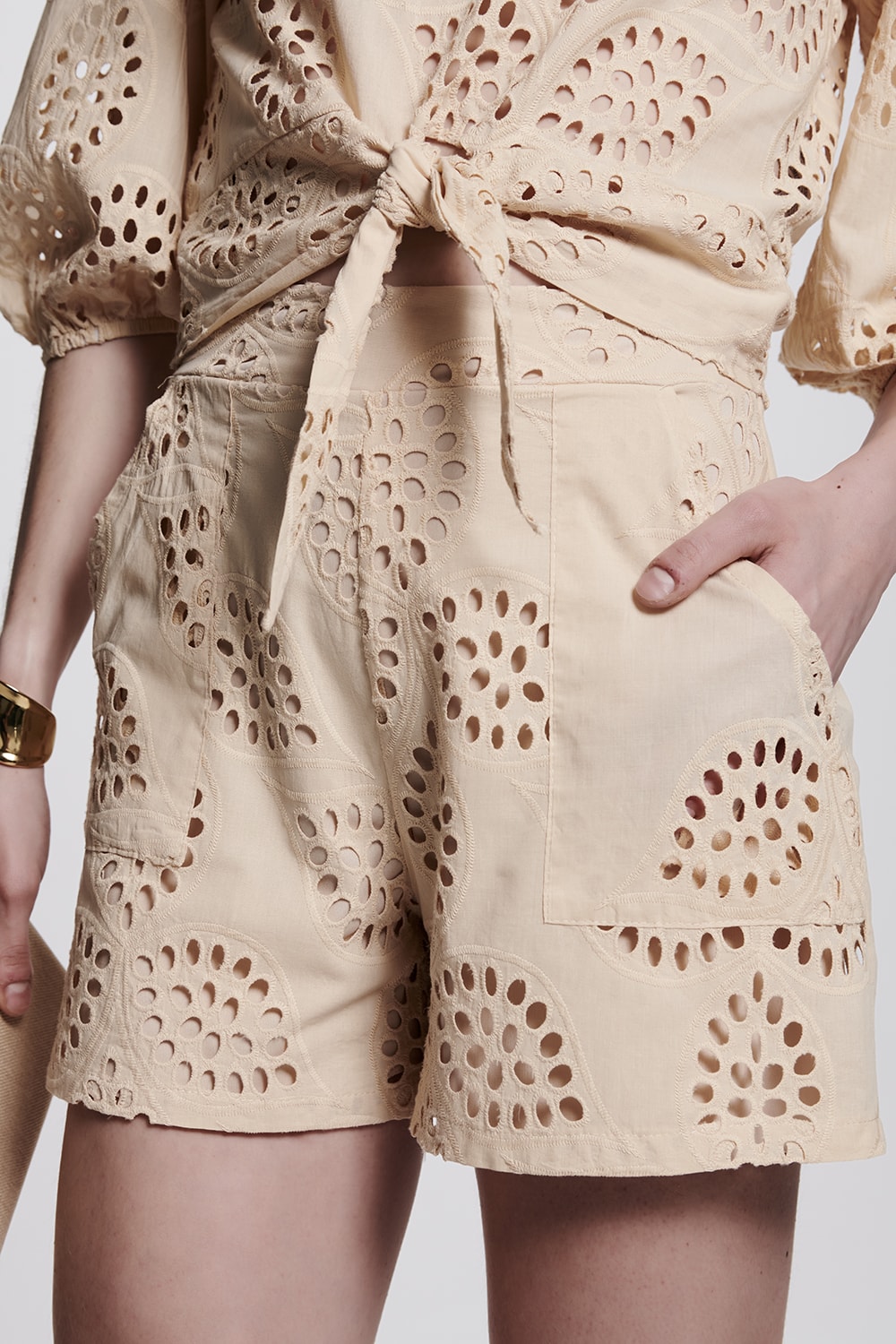 Shorts em laise de algodão tem bolso chapado ideal para seu final de semana, use com a blusa Ref.: 50.01.0825.
